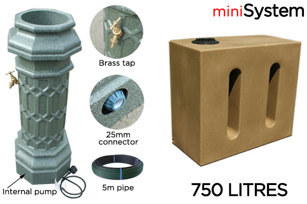 The ideal rainwater harvesting system for gardens. Collect rainwater from your roof into a 750 Litre water butt. This then connects to our specially adapted chiminey pot planter which has a built in water pump.